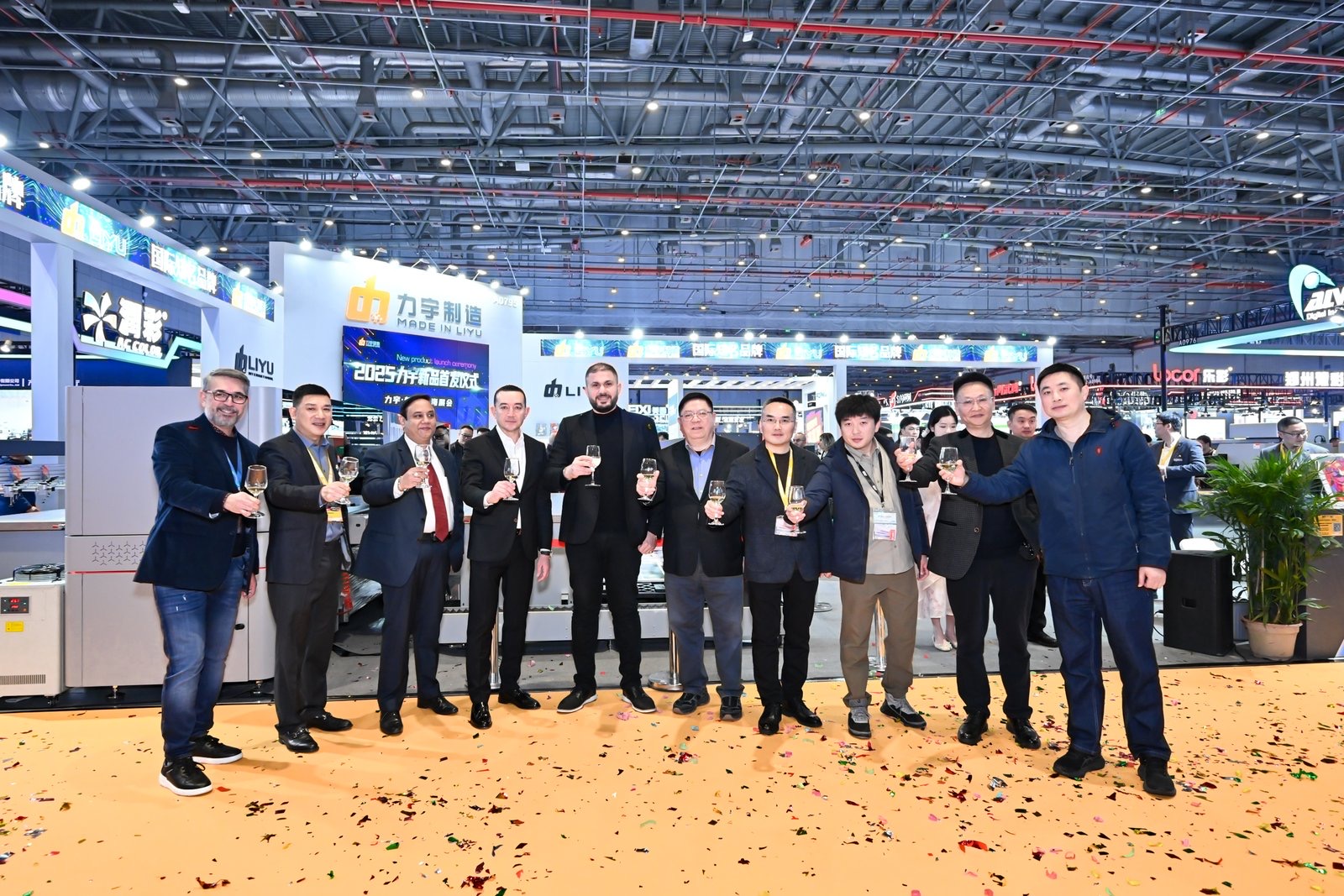 随着倒计时的结束,各位嘉宾共同为力宇宇宙H3-Auto 系列 UV 导带机剪彩揭幕。这一刻,现场气氛达到了高潮,掌声、欢呼声此起彼伏。这款备受瞩目的新品正式亮相,吸引了众多现场观众的目光,大家纷纷驻足观看,对其先进的技术和卓越的性能赞不绝口。
